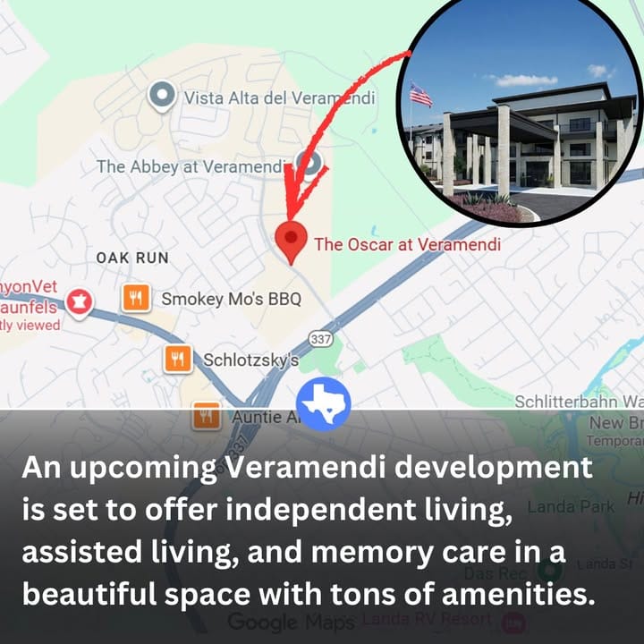 Opening Spring 2026, The Oscar is bringing resort-style senior living to Veramendi for adults 62 and older. The community blends independent living, assisted living, and memory care in a modern Hill Country setting designed for comfort and connection.