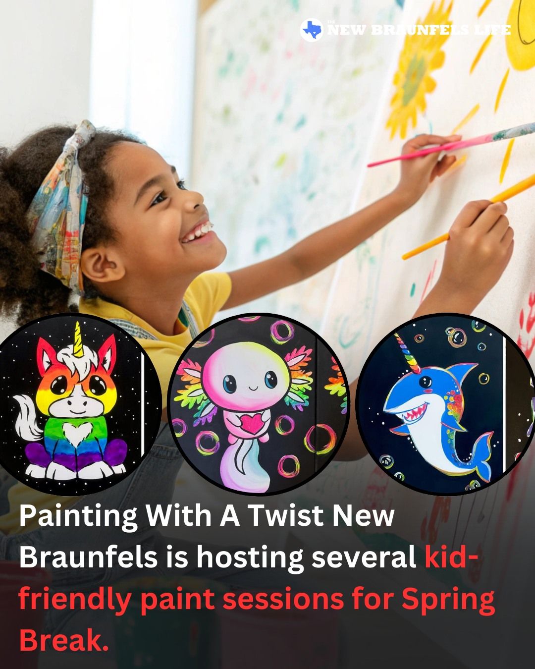 Not looking forward to the kids being out of school and hearing “I’m bored”? We’ve got you. Our partners at Painting With A Twist New Braunfels are hosting kid-friendly painting sessions over spring break that are equal parts fun and creative.